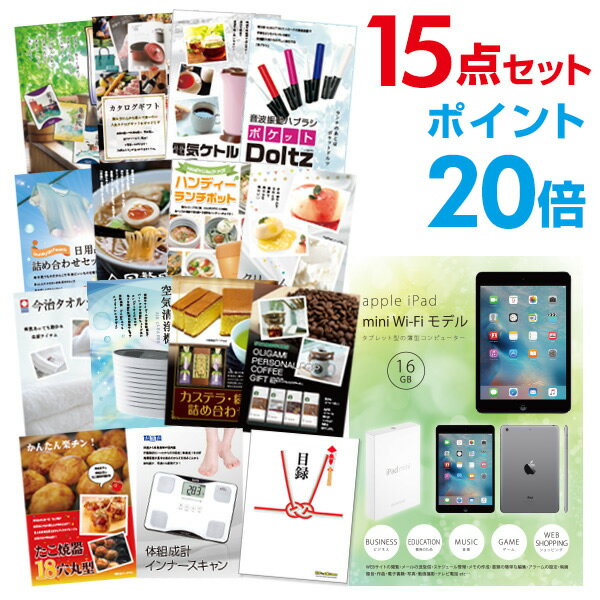 【11日2時迄エントリーでP29倍】【有効期限無し】【ポイント20倍】二次会 景品 15点セット apple iPad mini Wi-Fiモデル 16GB 目録 A3パネル付【QUOカード千円分付】 ビンゴ景品 結婚式二次会景品